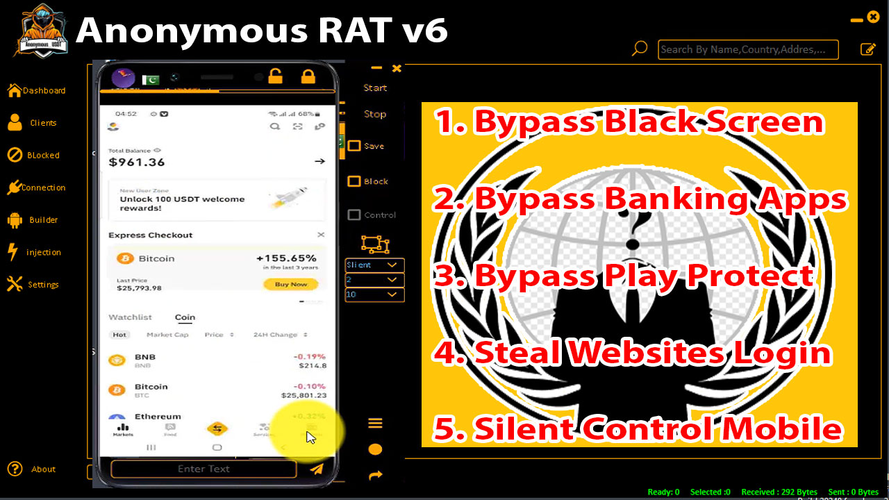 Anonymous RAT 6 is the best and most powerful Android device hacking software remotely worldwide. You can hack anyone’s mobile phone from your home by using this 2024 best Android rat. By using Anonymous RAT v6 you can bypass banking apps + black screen + unlock screen + steal websites login + bypass play protect and other antiviruses + Control victim’s mobile silently.Â