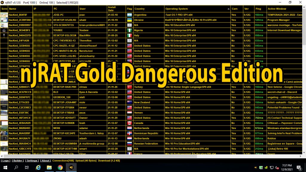 It is a very fast windows rat. NjRAT Gold has the ability to handle up to unlimited hacked clients without any kind of lagging issue.